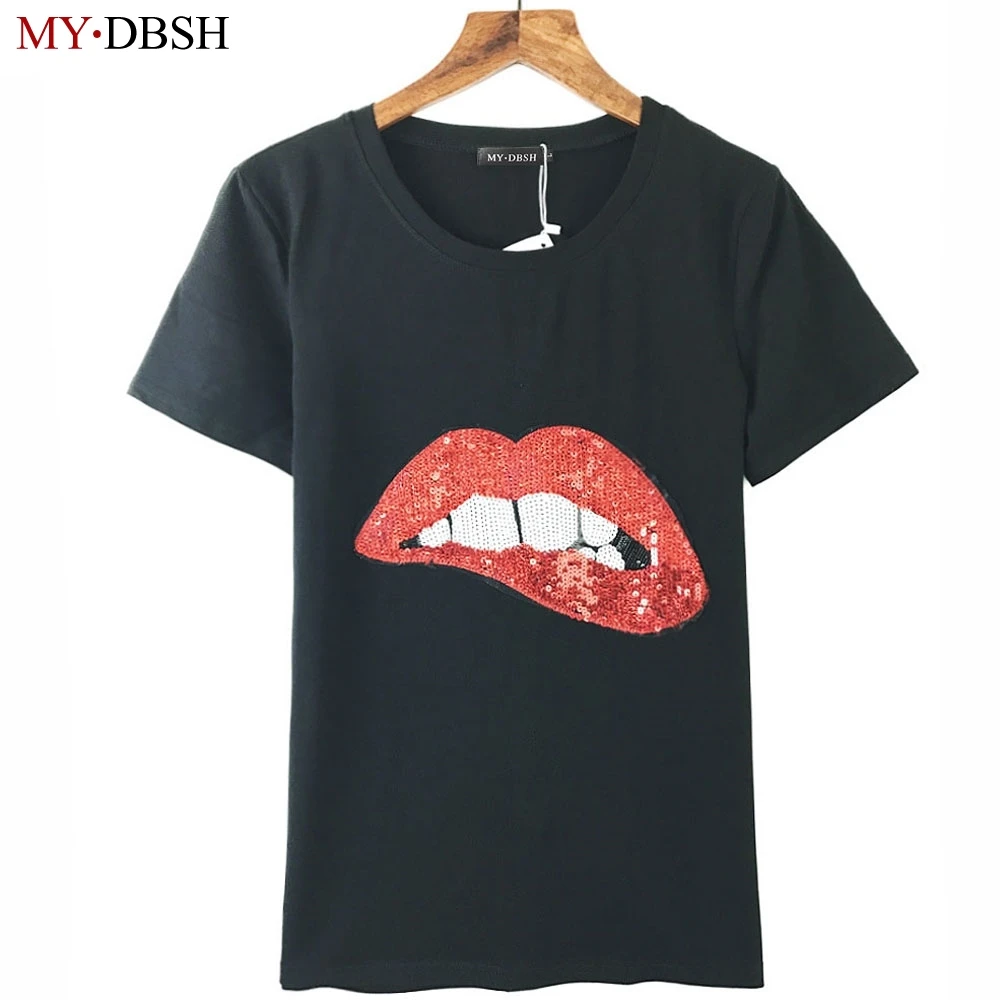 Red Biting Lips Bluz Harajuku Dames T Shirt Women Rave Sequin Tshirt Knot Top White Black Short Sleeve Femme Tshirts T Shirts Aliexpress